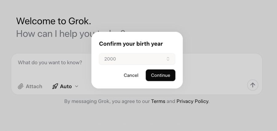 IT之家访问网页版地址(grok.com),用户只需提供出生年份即可开始使用,进行实时信息收集、获取问题答案,甚至可以生产图像。